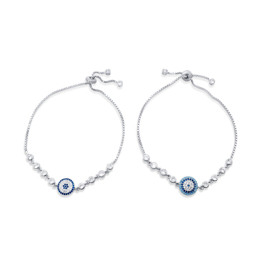 Turkeza | 925 Sterling Silver Evil Eye CZ Adjustable Bracelet - Turkish Jewelry