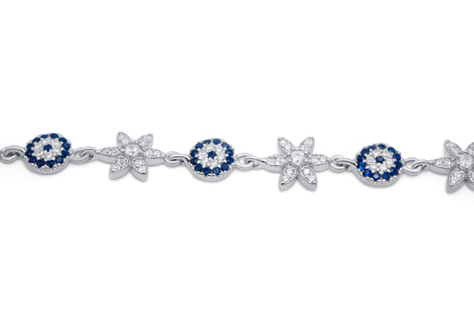 Turkeza | 925 Sterling Silver Daisy Flower and Evil Eye CZ Bracelet