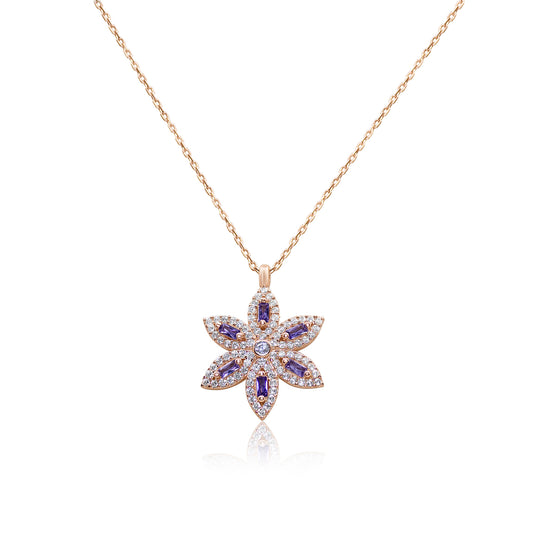 Turkeza | 925 Sterling Silver Flower Rose Gold Purple Amethyst Necklace