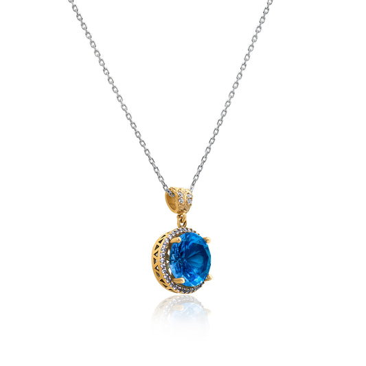 Turkeza | 925 Sterling Silver Blue Topaz Halo Turkish Necklace