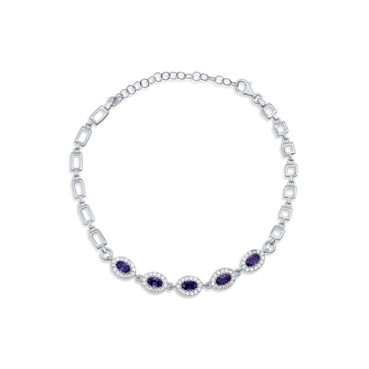 Turkeza | 925 Sterling Silver Oval Gems with Halo Cubic Zirconia Turkish Bracelet